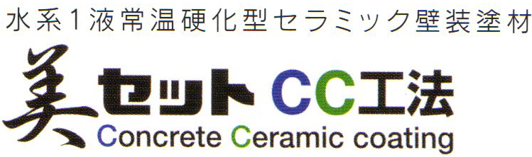 美セットCC工法は、含浸材、セラミック塗材、高性能水系アクリル樹脂、無機系着色剤の各素材をハイブリット化し、浸透性、親水性、耐久性、耐候性、環境配慮を実現させ、打ち放しコンクリートの素材感・風合いを長時間保持するための新工法です。新築工事・改修工事のどちらにも大きな効果。