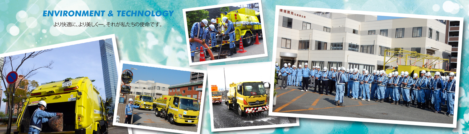 私たち株式会社環境開発は、上下水道及び、道路を中心に最新の技術と機動力を駆使してさまざまな都市機能の整備に取り組んでいます。人が集い暮らす街だから、より快適に、より美しく。それが私たちの願いであり、使命でもあるのです。