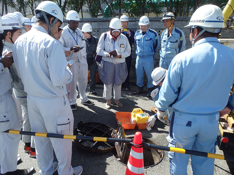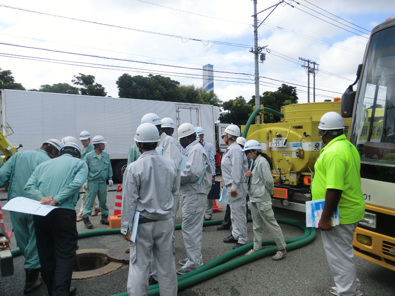 2018年9月(東浜) JICA研修員の皆様を迎えて、下水道の高圧洗浄車清掃ならびにTVカメラ調査のデモを実施しました。
