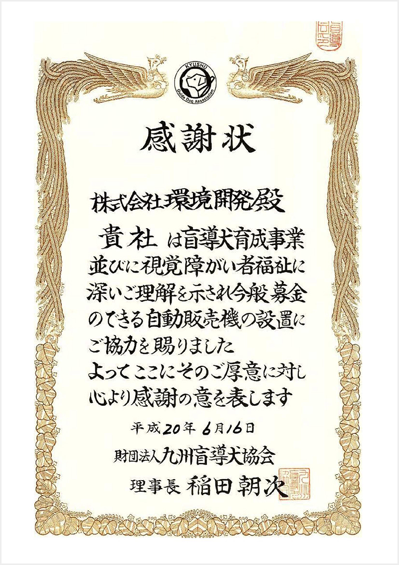 社員厚生棟に、視覚障がい者福祉に募金できる自動販売機を設置しております。