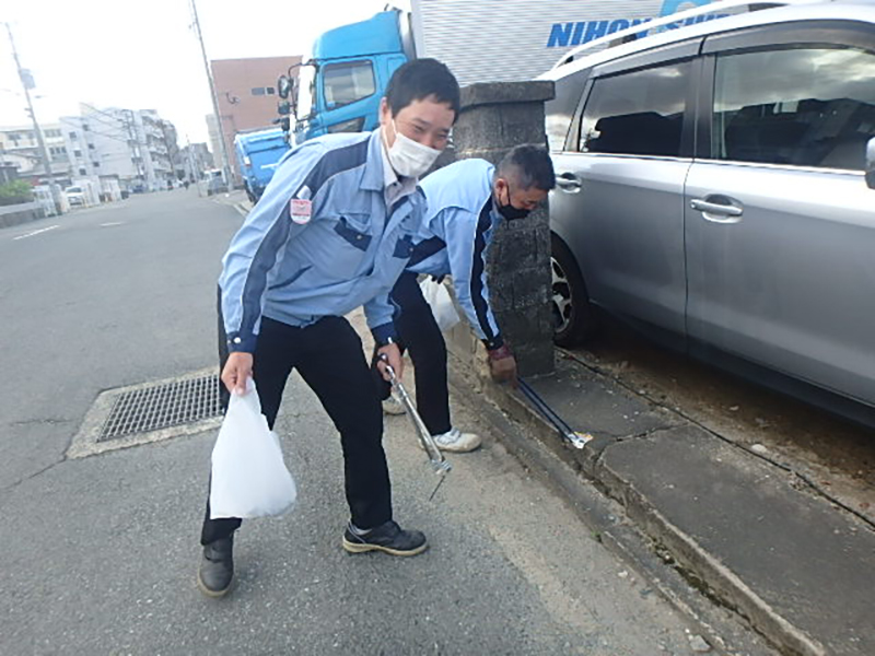 弊社は毎月第二火曜日に、本社周辺のボランティア清掃を行っております。
