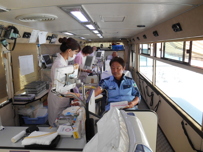 平成20 年から毎年5 月、日本赤十字社の献血車を本社に招いて、グループ企業の社員にて協力しております。