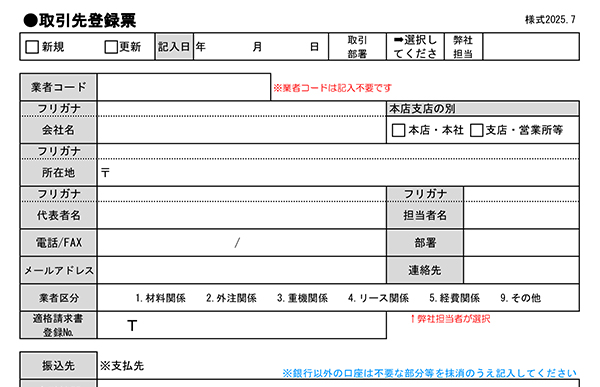 取引先登録票のダウンロード