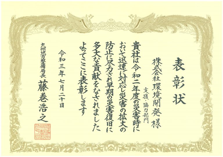 令和3年度国土交通省九州地方整備局「国土交通行政功労表彰」