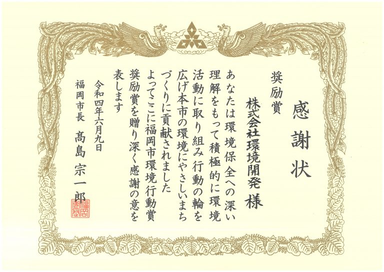 福岡市環境行動賞「奨励賞」受賞