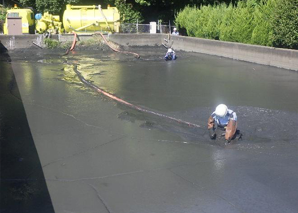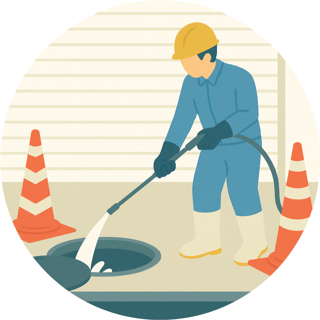 ●下水道管清掃:高圧洗浄車を用い、油汚れや土砂などの堆積物を除去し、正常な流れを維持